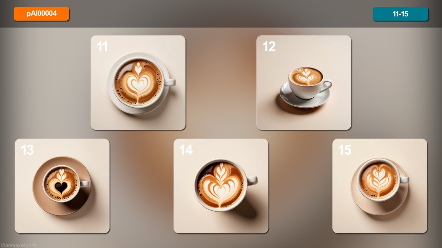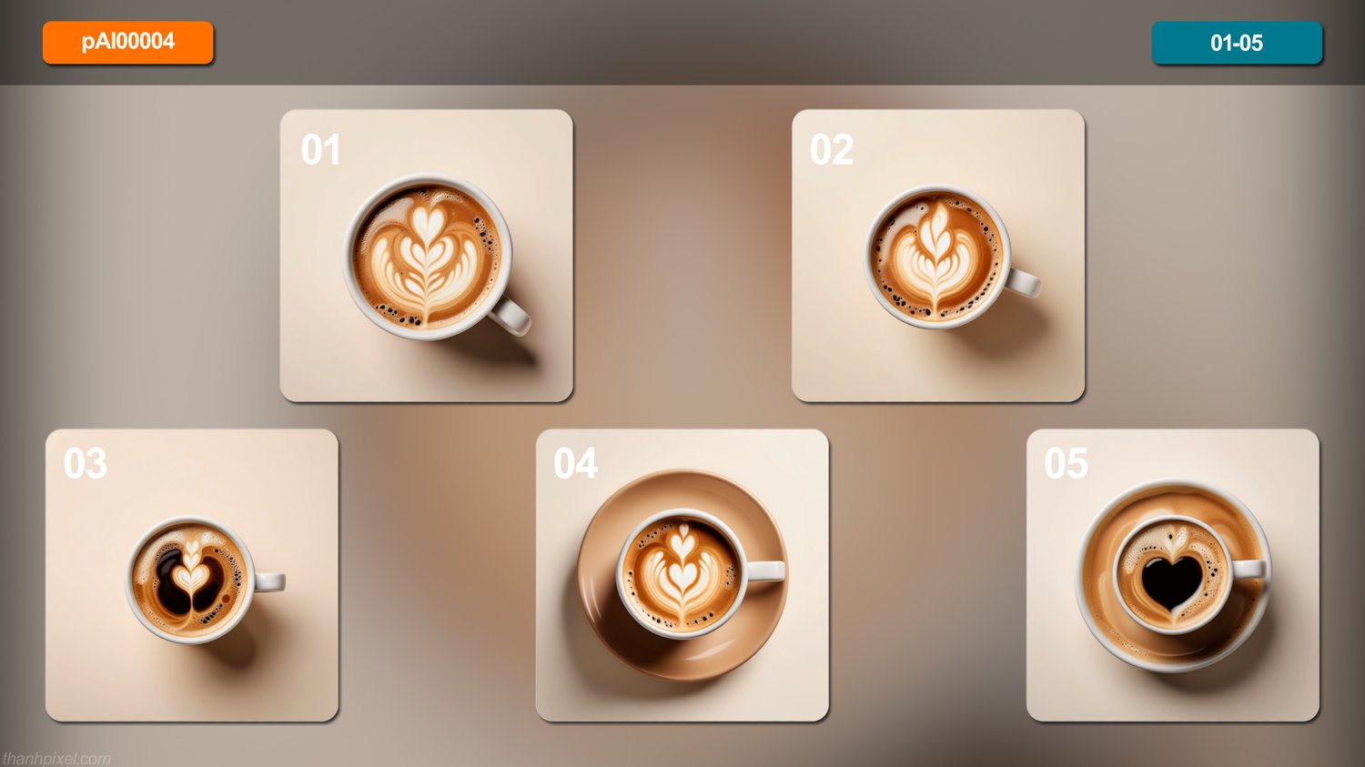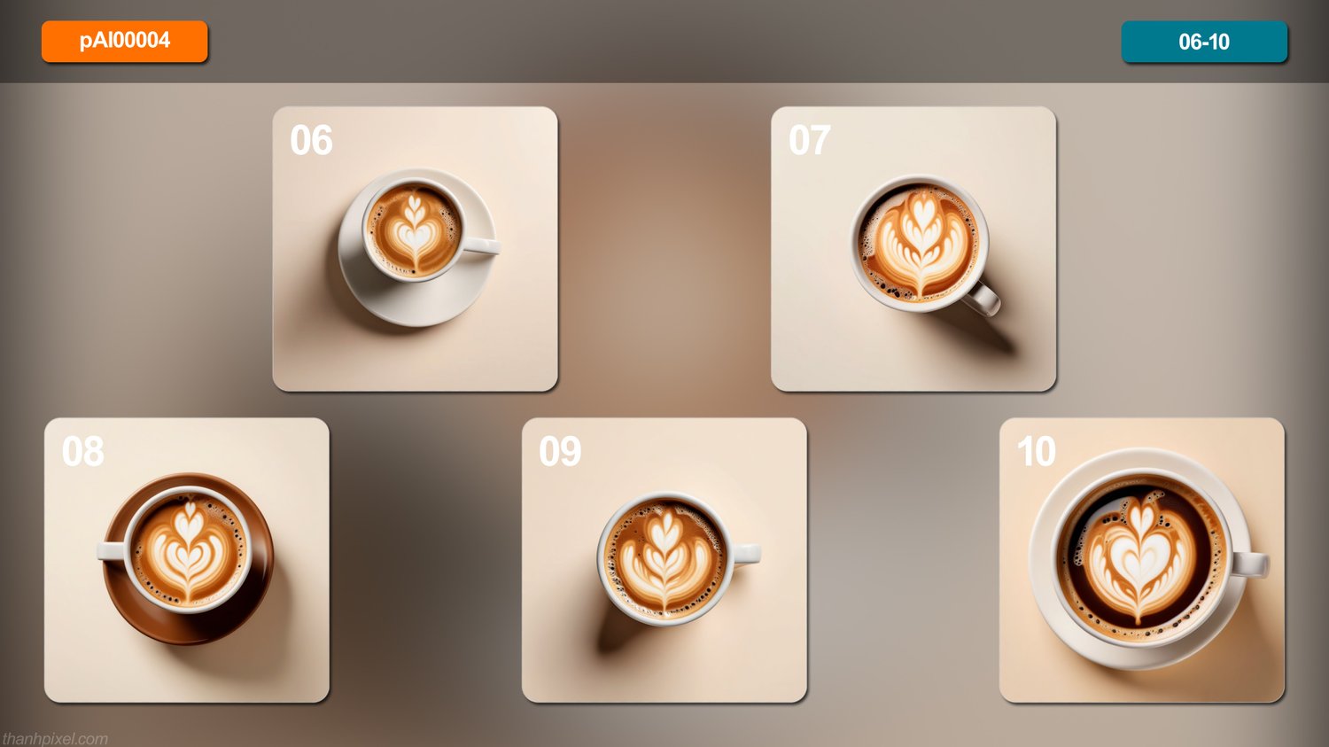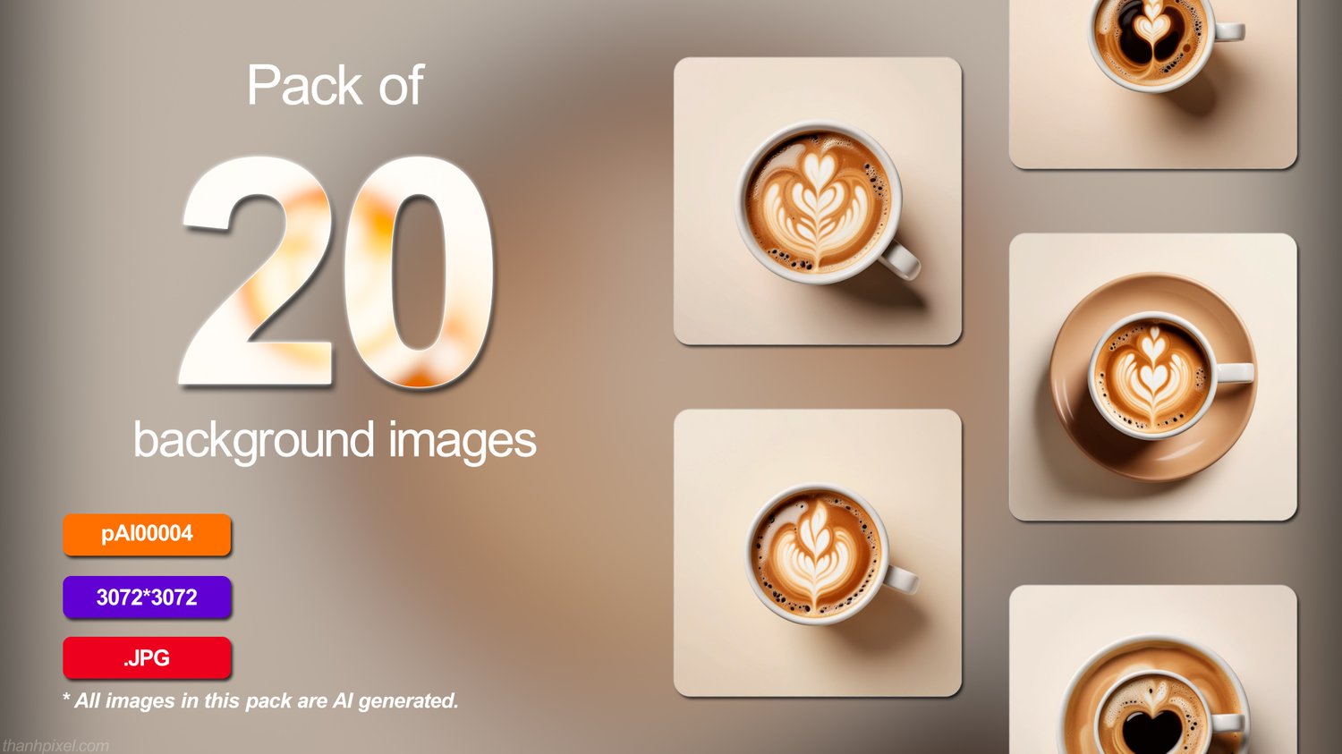 Pack of 20 food healthy coffee icon sweet dreamy tone minimalist professional color grading isolated white background realistic real contrast, square composition. All images in this pack are AI generated.