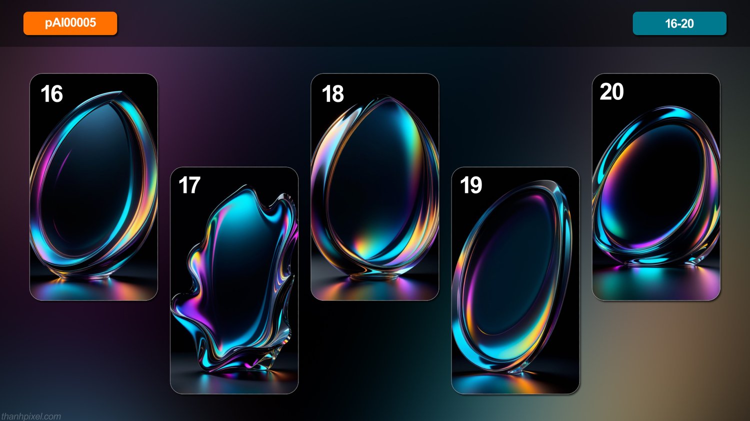 [AI] Pack of 20 abstract silky smooth transparent hologram shiny black background wallpaper space 3d luxury majestic cinematic professional color grading, vertical composition.