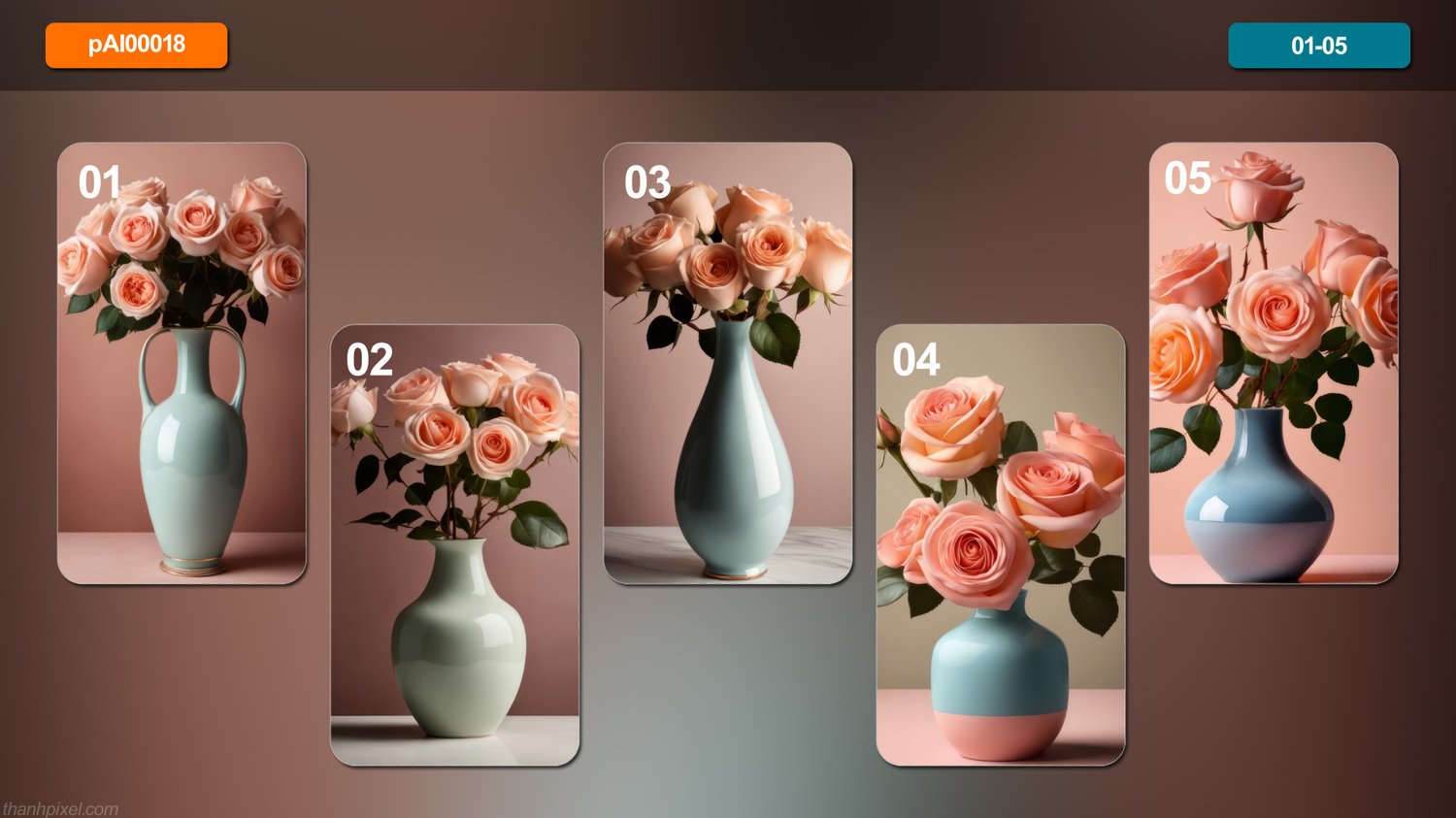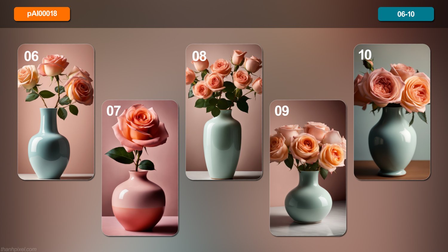 [AI] Pack of 20 rose flower tree beautiful nature beauty floral vase minimalistic retro colours photorealistic photography, vertical composition.
