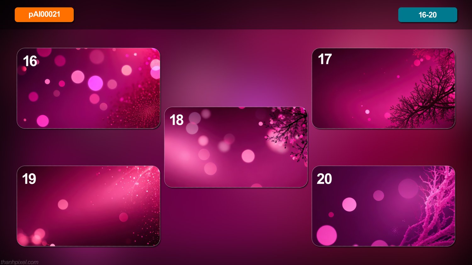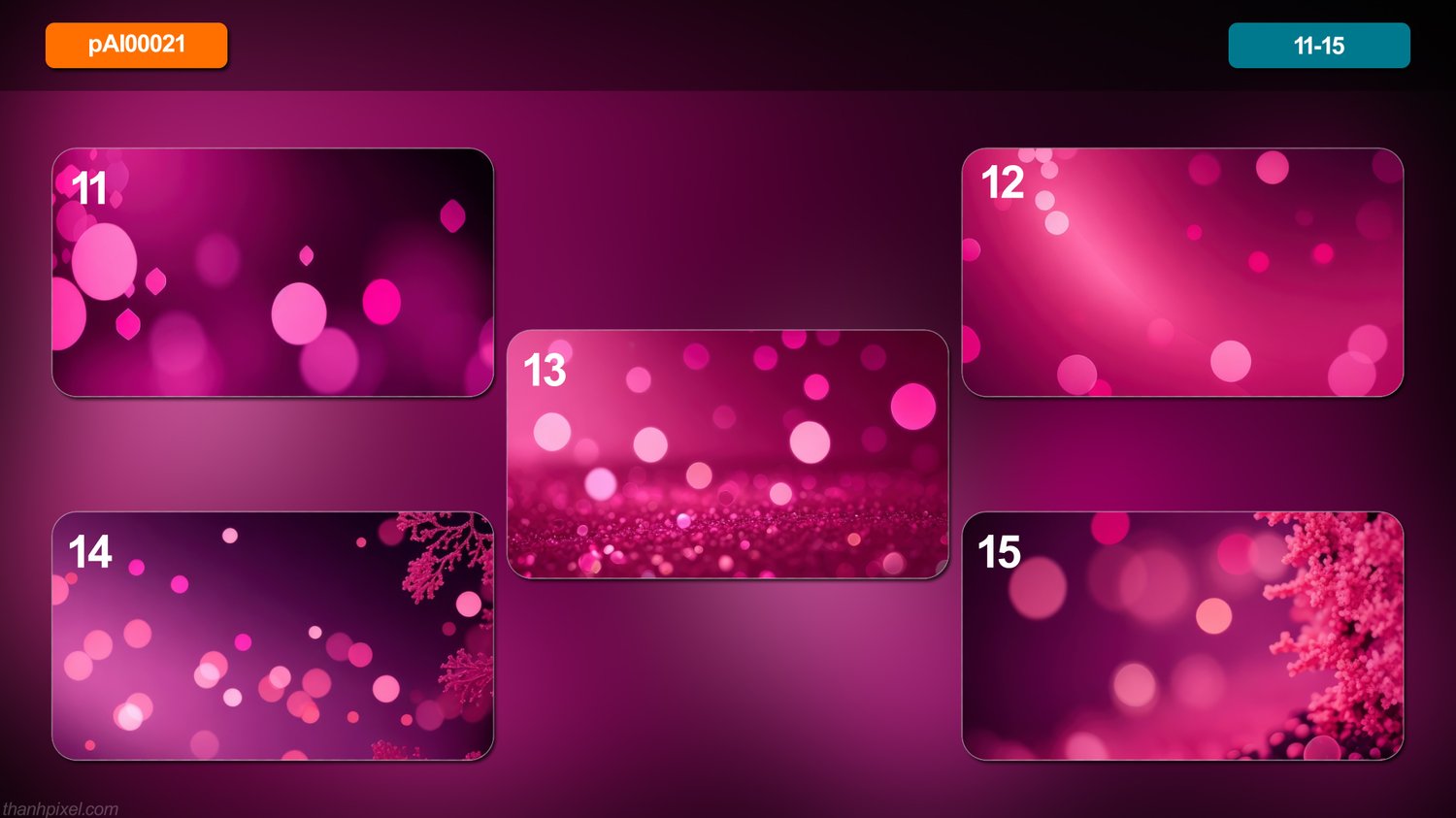 Pack of 20 abstract dark coral pink backgrounds bokeh colorful colors background, horizontal composition. All images in this pack are AI generated.