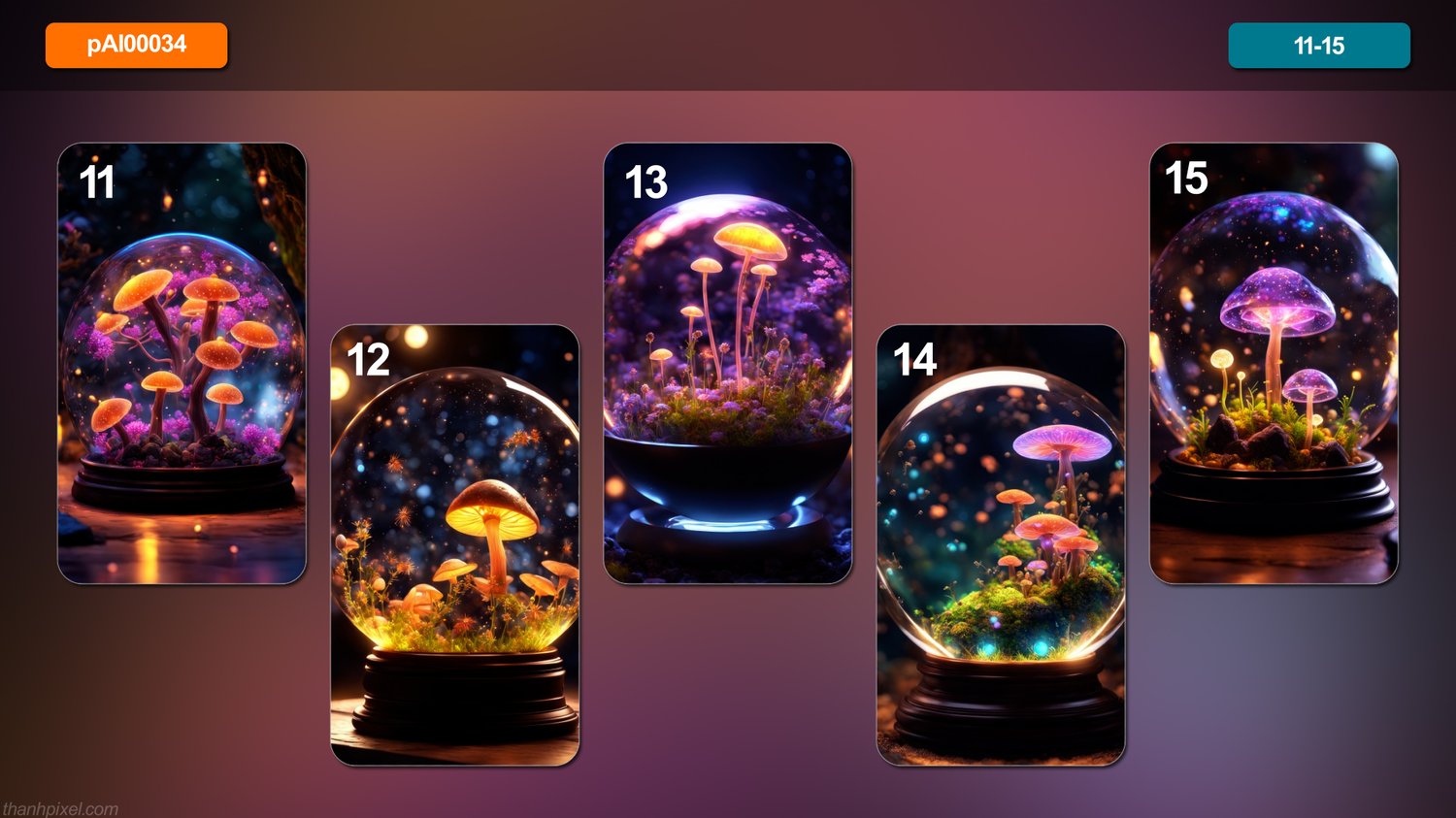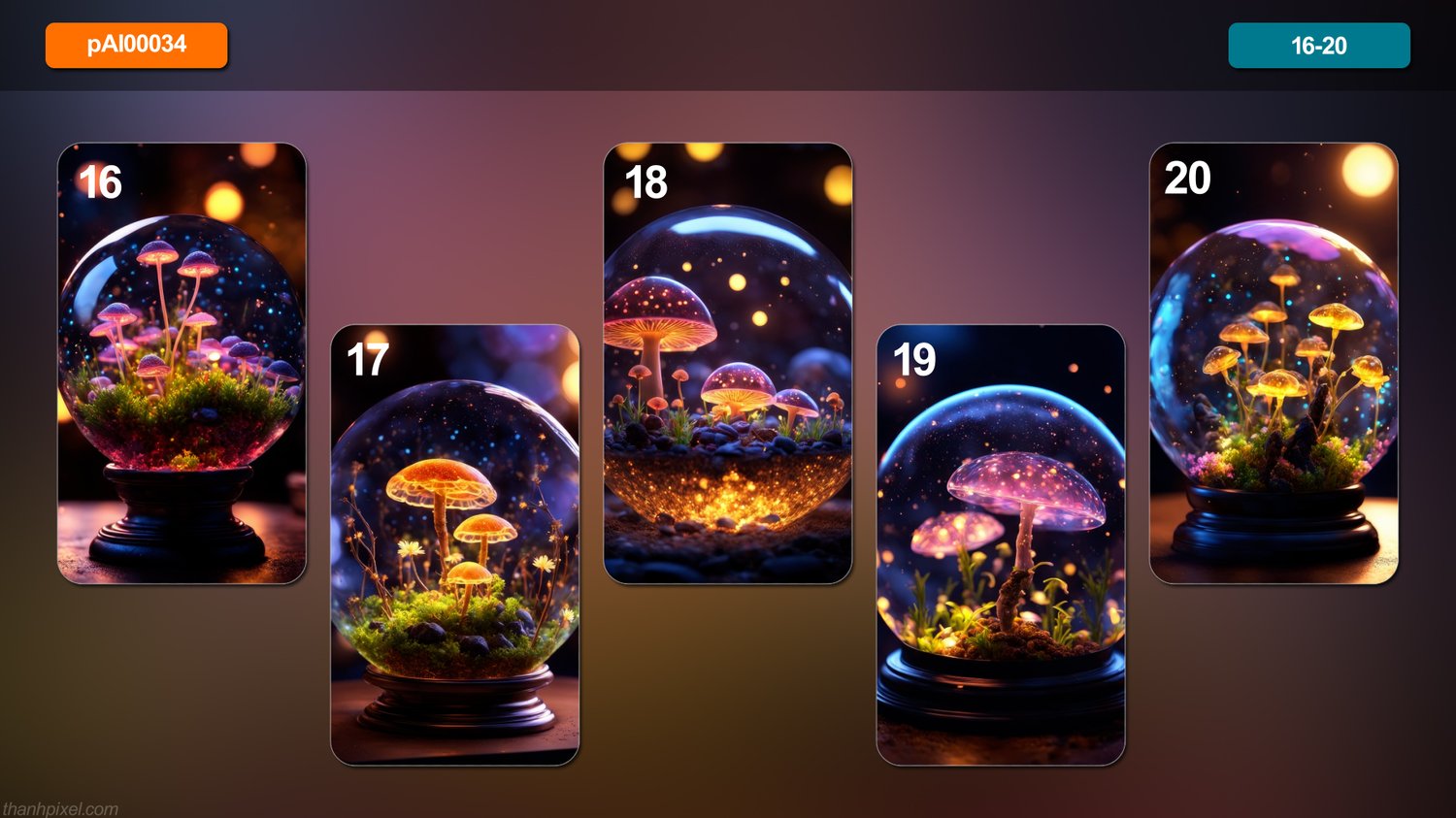 [AI] Pack of 20 fantasy magic mysterious masterpiece glowing transparent luminous mycelia, vertical composition.