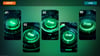 [AI] Pack of 5 green neon free button digital futuristic technology abstract digit futurist, vertical composition.